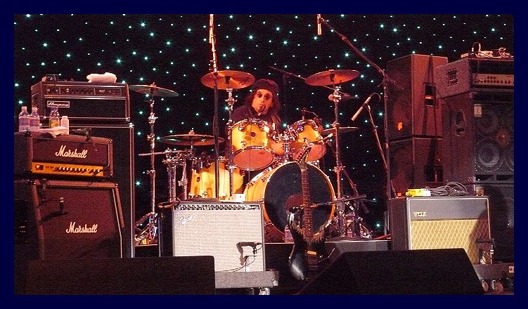 squeezed behind his drum kit and amps! |
